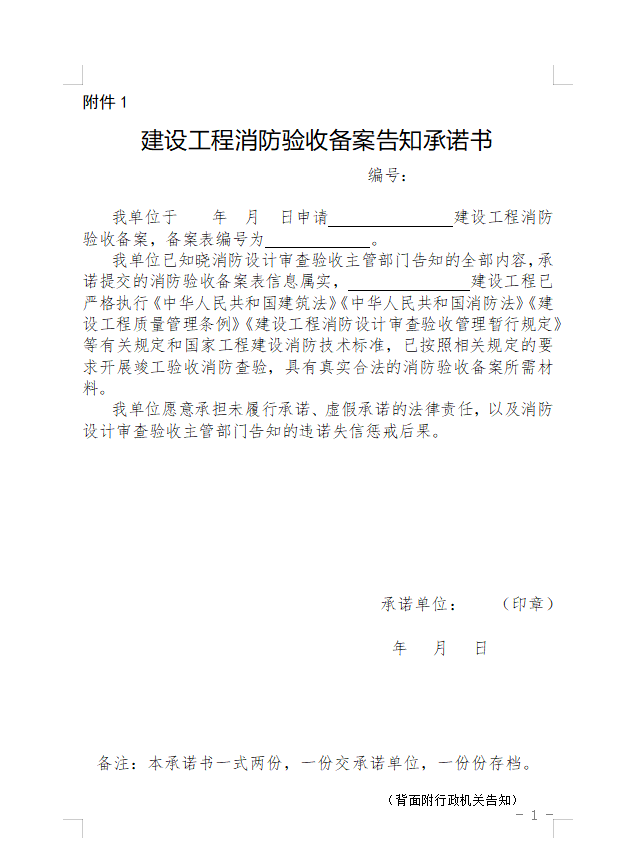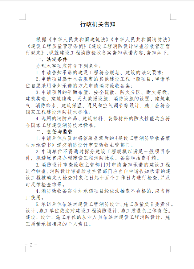 10月1日起對一般項目實行建設工程消防驗收告知承諾制備案的通知